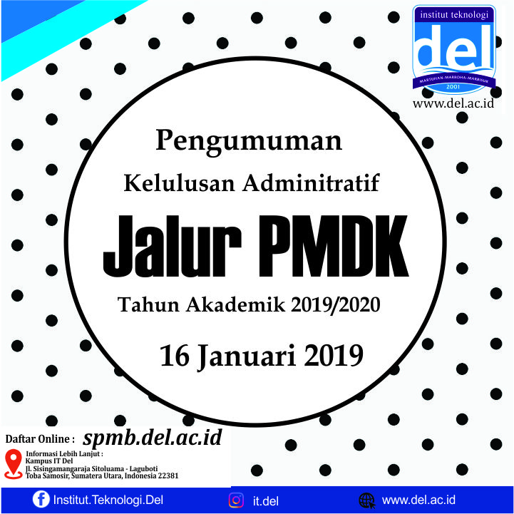 Dengan ini diinformasikan kepada seluruh Peserta PMDK Institut Teknologi Del (IT Del) tahun 2019, yang namanya tertera di Tabel-1 Pengumuman ini, untuk mengikuti Wawancara Tertulis sebagai tahapan proses penerimaan jalur PMDK IT Del.